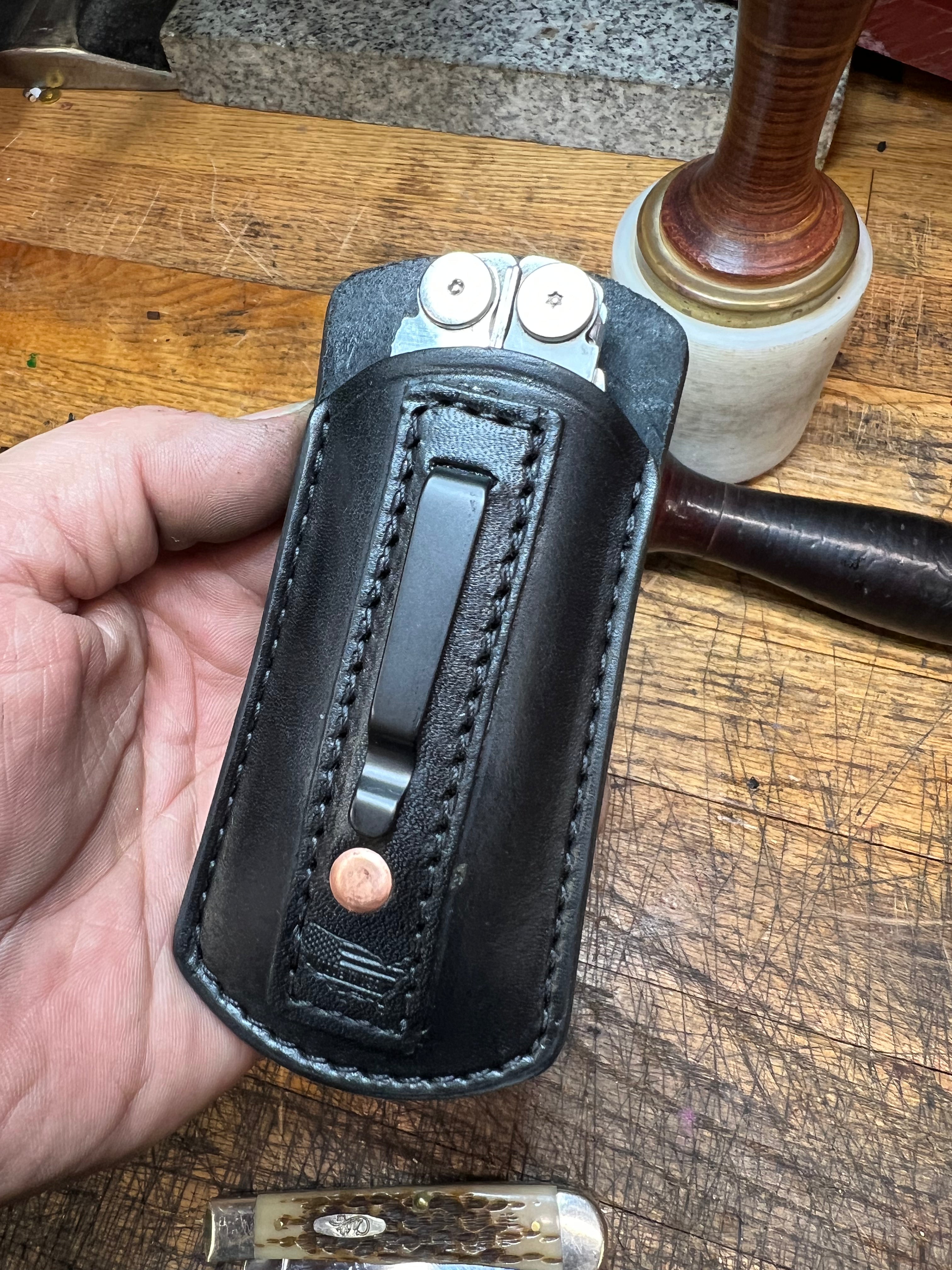 -These Cases are lined with a matching leather liner and are double stitched around the body of the knife which helps protect the tool and gives the case a higher end beefier feel.